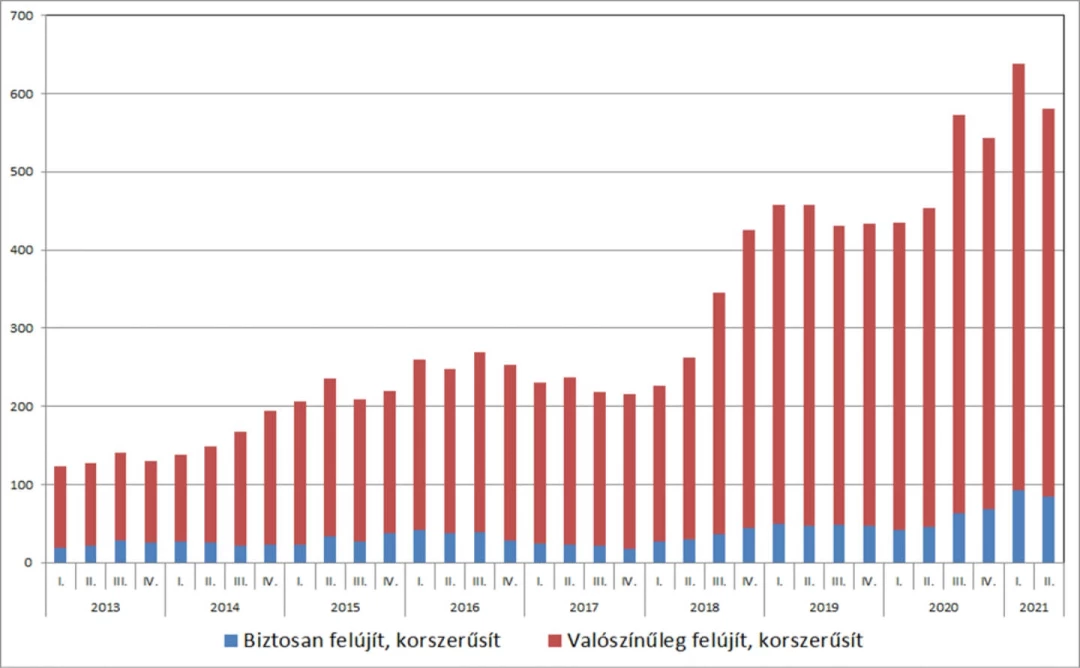 A következő egy évre tervezett felújítási és korszerűsítési akciók, 2021. II. negyedév
