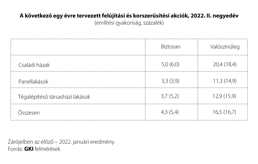 E kisebb elbizonytalanodás a társasházi lakások lakói esetében érhető tetten, a családi házak tulajdonosai körében nem. A legerőteljesebb renoválási terveket most is a községekben élők fogalmazták meg.