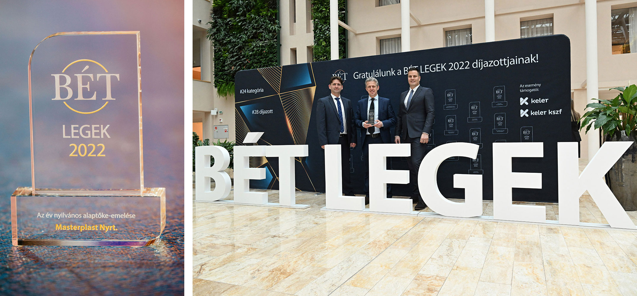 A 2022-ben a Masterplast Nyrt. sikeres tőzsdei tőkebevonást hajtott végre 9,22 milliárd forint értékben, amivel „Az év nyilvános alaptőke-emelése” címet nyerte el. A vállalat stratégiai ásványgyapot gyártásfejlesztési beruházásainak finanszírozási céljával fordult a befektetők felé, a részvény rábocsátási tranzakció 2.249.352 darab új részvény értékesítésével zárult 2022 novemberében. A Masterplast újabb BÉT Legek díja azt is jelenti, hogy sorozatban három egymást követő évben került a hazai tőzsde legjobbjai közé a hőszigetelőanyag gyártó vállalat.