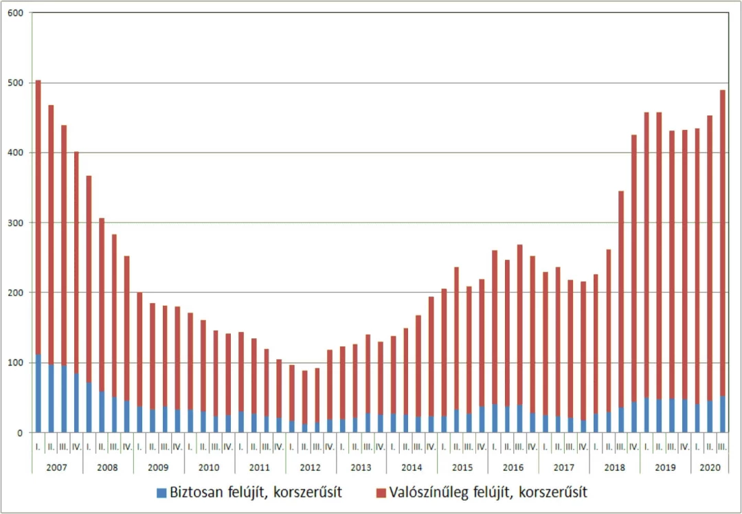 A következő egy évre tervezett felújítási és korszerűsítési akciók, 2020. III. negyedév