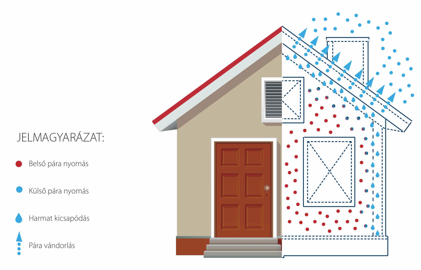 Az épület belsejében minél magasabb a páratartalom és minél melegebb van, annál nagyobb a párnyomás különbség télen a külső levegőhöz képest. A pára annál nagyobb erővel, nagyobb intenzitással szeretne kifelé áramolni.