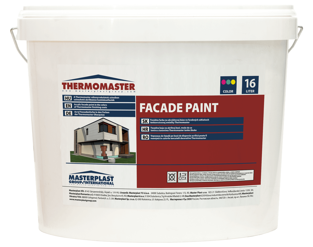 5THERMOMASTER univerzális alapozó a biztos tapadásért. | 6THERMOMASTER akril / THERMOMASTER szilikon vakolat 3 féle struktúrában és 148 hangulatos színből választhat. | THERMOMASTER homlokzatfesték a vakolatok színeivel megegyező festékek a harmóniáért. | 7THERMOMASTER MOSAIC díszítő lábazati vakolat 25 színárnyalat a tökéletes végeredményért. |